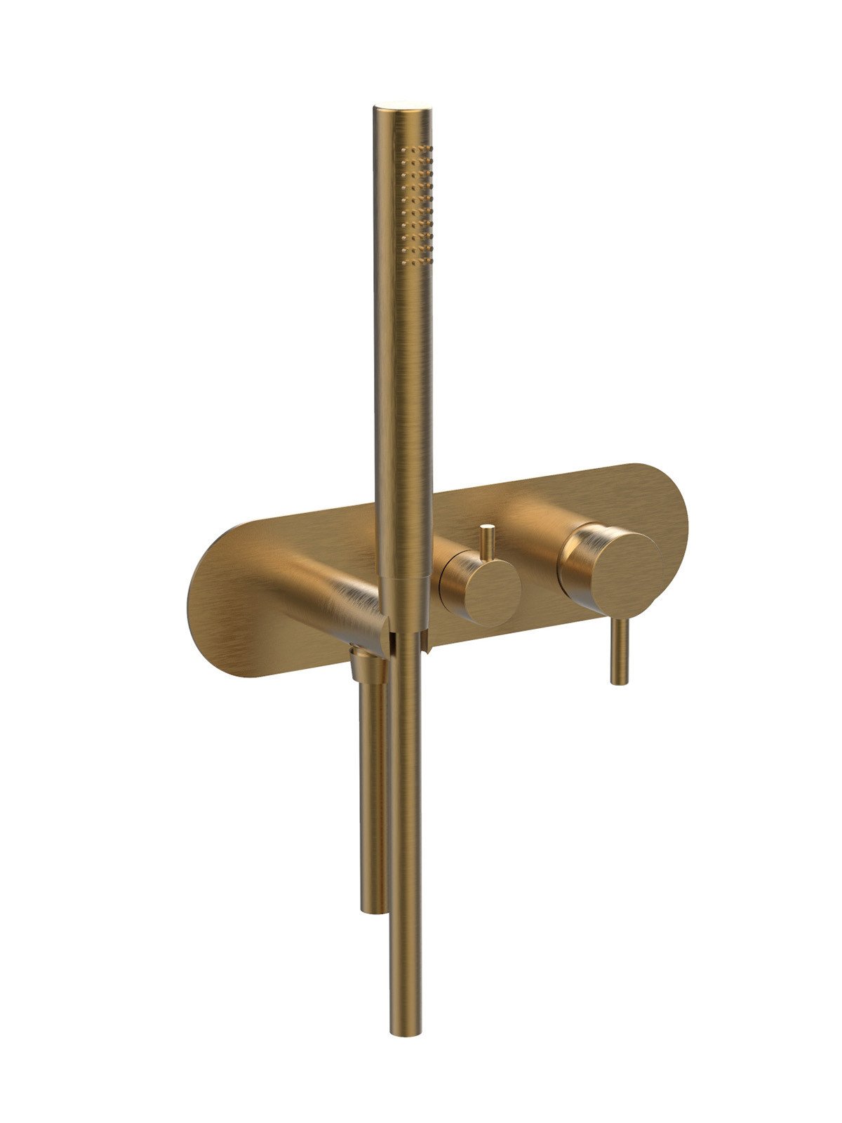 Kit de finition mitigeur encastré 2 voies avec inverseur avec disques céramiques et douchette, plaque en laiton - Pepe XL - Contemporary