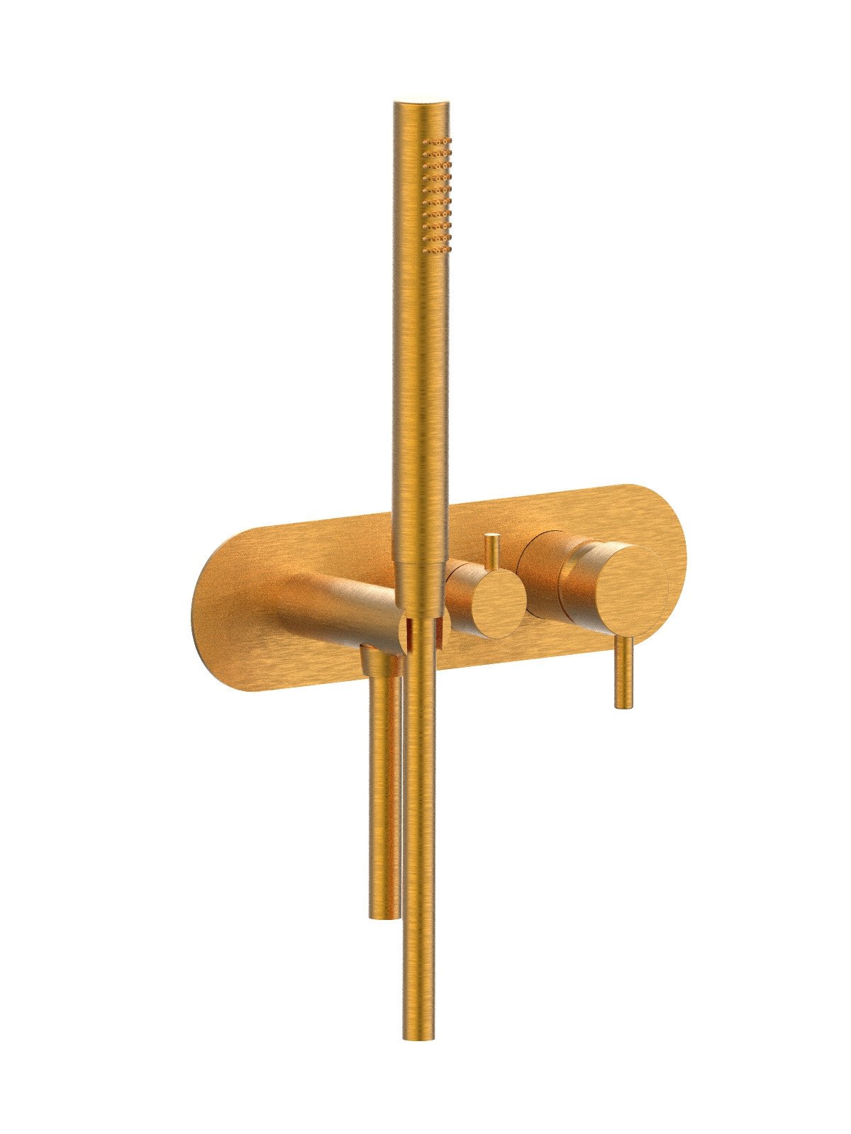 Kit de finition mitigeur encastré 3 voies avec inverseur avec disques céramiques et douchette, plaque en laiton - Pepe XL - Contemporary