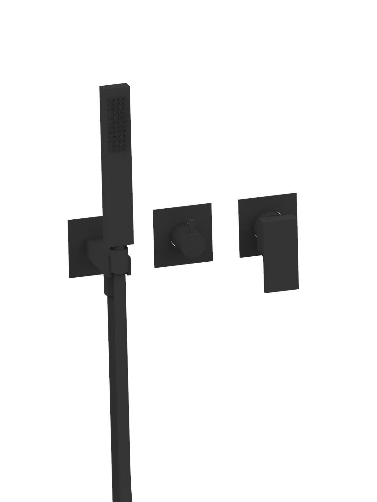 Kit de finition mitigeur encastré 3 voies avec inverseur avec disques céramiques et douchette, plaques en laiton - Vita Due - Contemporary