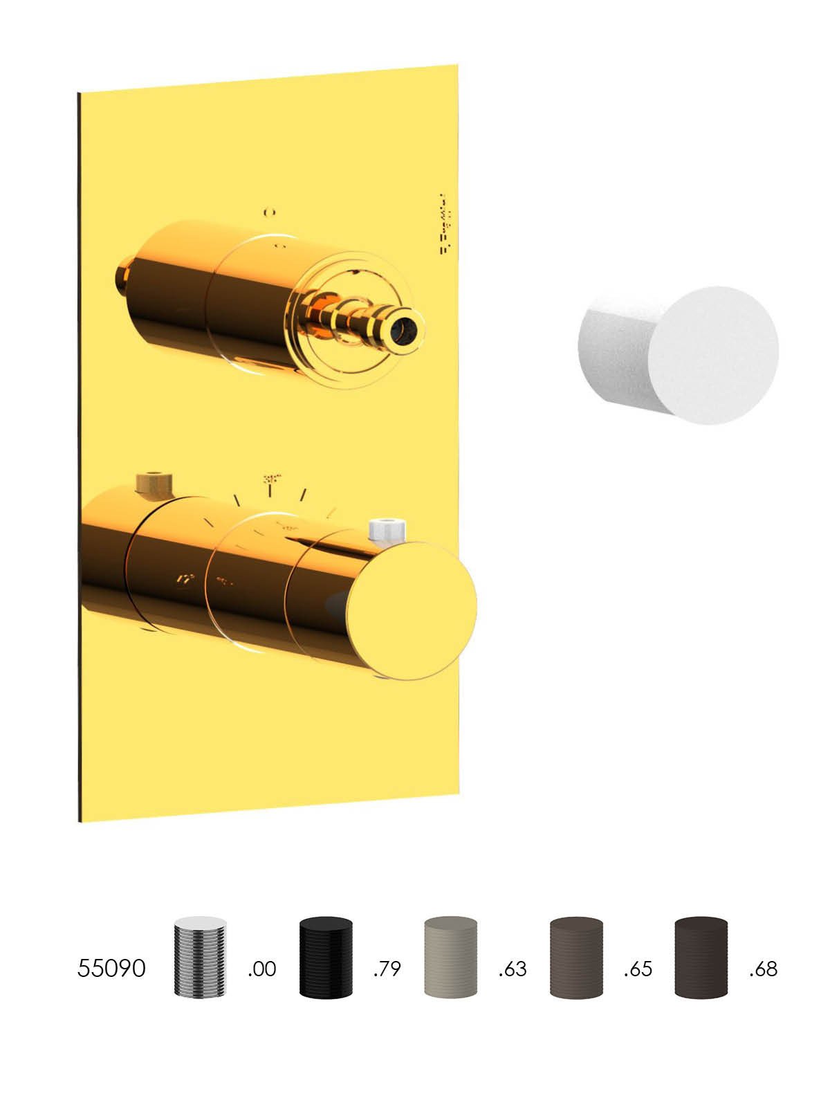 Kit de finition mitigeur thermostatique à encastrer 3 voies, plaque en laiton - Douches - Contemporary