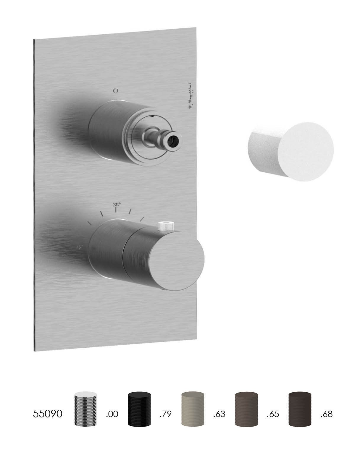 Kit de finition mitigeur thermostatique à encastrer 3 voies, plaque en laiton - Douches - Contemporary