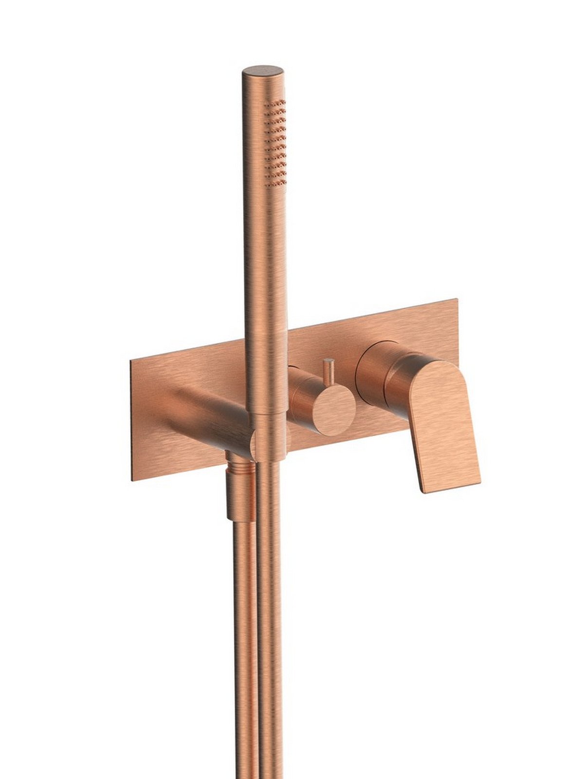 Kit de finition mitigeur encastré 2 voies avec inverseur avec disques céramiques et douchette, plaque en laiton - Gintonic - Contemporary