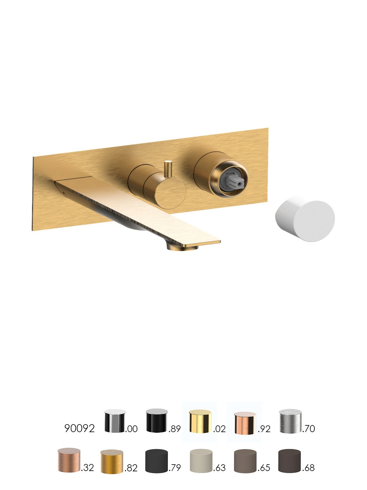 Kit de finition pour mitigeur de baignoire avec inverseur 3 voies à disques céramiques et bec, plaque en laiton - Narciso - Contemporary